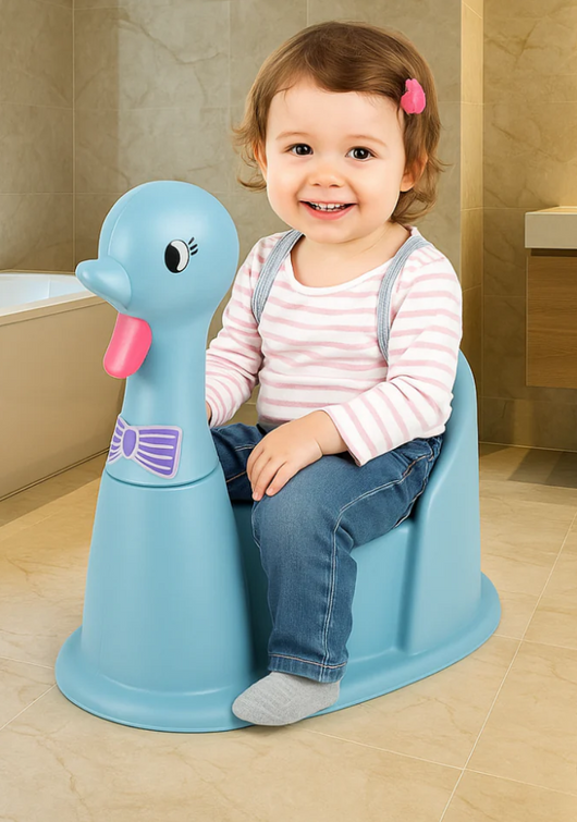 This duck-shaped toddler potty combines playful design with practical comfort. Featuring a soft PU cushion, it ensures a gentle seating experience for your child while encouraging independent potty training. Its ergonomic shape supports proper posture, making it an ideal choice for early childhood hygiene development. Durable and easy to clean, this potty offers both functionality and child-friendly appeal.