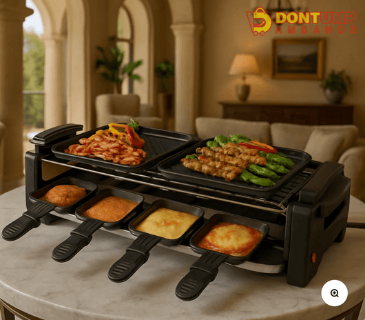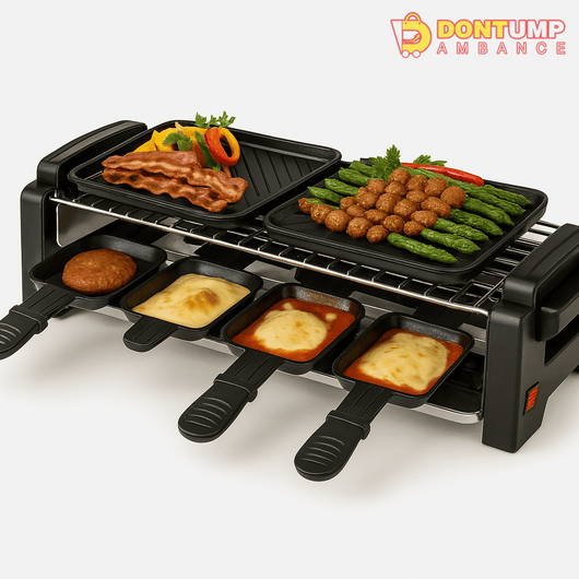 Experience the ultimate indoor grilling with this Electric Raclette Grill, featuring a durable non-stick grill plate and eight individual cheese pans. Designed for family BBQs and lively indoor parties, it allows you to grill meats and vegetables while melting cheese simultaneously. Its efficient heating ensures even cooking, making it easy to serve delicious, customizable meals. Ideal for social gatherings, this grill combines convenience and versatility for a seamless dining experience.