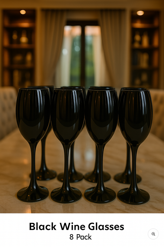 Elevate your entertaining with this Elegant Black Wine Glass Set, featuring eight meticulously crafted pieces designed for sophistication and style. Each glass combines sleek black tones with fine craftsmanship, enhancing the presentation of your favorite wines. Perfect for formal dinners or intimate gatherings, this set offers both aesthetic appeal and functional durability, ensuring a refined experience for you and your guests.