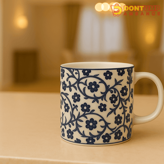 Elegant Blue Floral Ceramic Mug – Classic Vintage Style Coffee Cup