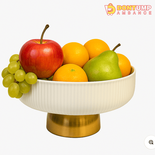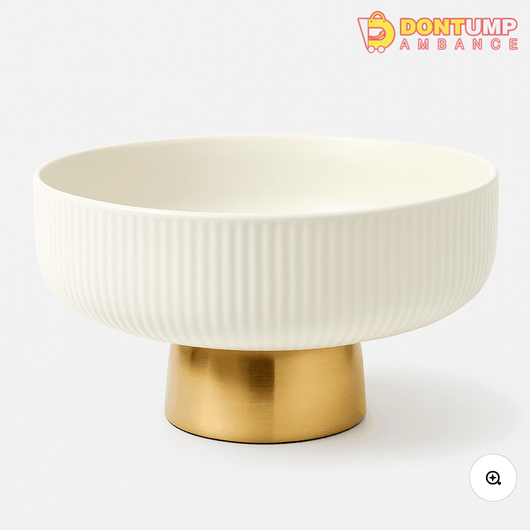 Elegant Ceramic Pedestal Bowl with Gold Base – Modern Table Centerpiece