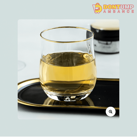 Elevate your drinkware collection with this elegant gold-rimmed glass tumbler, expertly designed for cocktails, mocktails, and refreshing beverages. Its refined gold trim adds a touch of sophistication, making every sip feel special. Crafted for both style and durability, this tumbler enhances presentation while providing a comfortable grip, ideal for entertaining or everyday use.