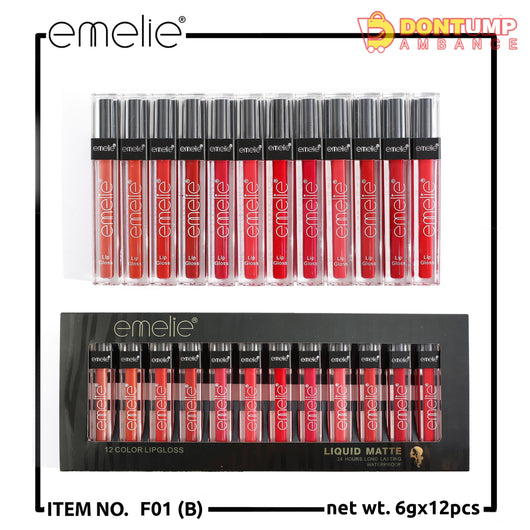 Emelie Matt Lipgloss 12 pcs pack offers a curated selection of richly pigmented, long-lasting matte lip glosses. Designed for smooth application and comfortable wear, this set provides versatile shades suitable for various occasions. Ideal for enhancing your makeup collection with expert-quality lip color that stays vibrant throughout the day.