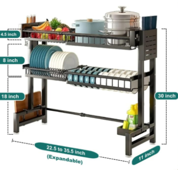 Maximize your kitchen space with the Expandable 2-Tier Over The Sink Rack. Designed for efficiency, this rack fits securely over your sink, providing two levels of storage for drying dishes, organizing utensils, or holding cleaning supplies. Its expandable feature allows customization to fit various sink sizes, ensuring stability and convenience. Crafted to optimize airflow, it promotes faster drying and keeps your countertop clutter-free, making it an essential tool for maintaining an organized and hygienic kitchen environment.