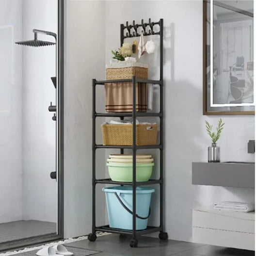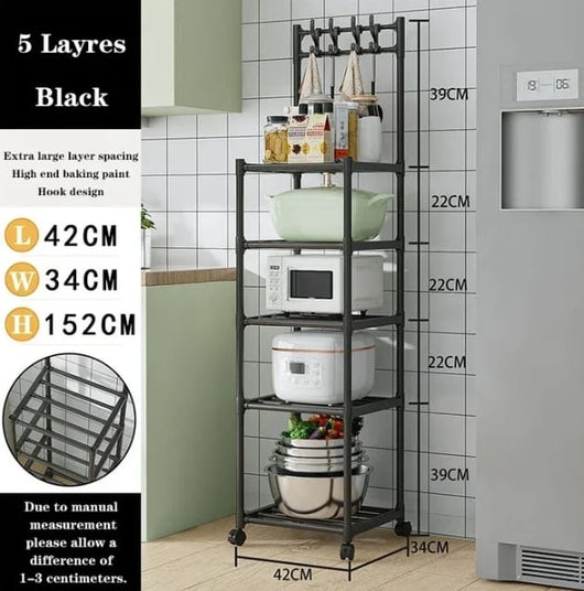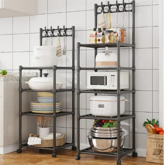 This floor-standing storage rack offers versatile organization for your kitchenware, combining a removable storage rack with a trolley for easy mobility. Crafted to maximize space efficiency, it provides sturdy support and convenient access to your utensils and cookware. Designed and manufactured in China, this storage solution is ideal for maintaining a tidy and functional kitchen environment.
