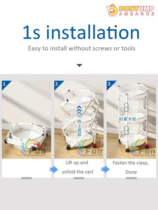 This foldable 3-layer iron trolley is a versatile and durable tool for your storage and organization needs. With its compact design and sturdy construction, it can hold a variety of items while taking up minimal space. Perfect for home, office, or commercial use.