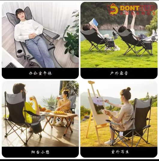 Experience ultimate relaxation with our Foldable Reclining Chair! Featuring a foot pedal for easy reclining, a convenient glass holder, a side pouch for storage, and a comfortable head rest. Perfect for camping, outdoor events, or simply unwinding in your backyard. Say goodbye to uncomfortable seating and hello to pure comfort.