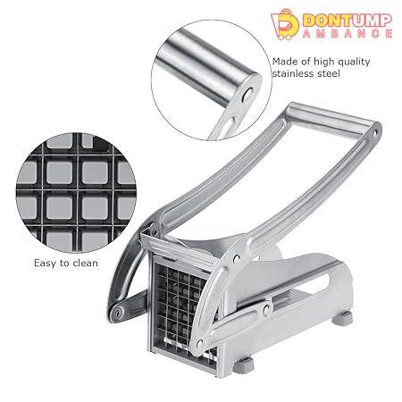 - EASY TO USE: The long heavy duty handle can effortlessly prep your fries and vegetables. Our heavy-duty pulldown lever firmly presses your potato through the sharp stainless steel blades. Built with sturdy legs and suction cup base for optimal leverage while cutting. Simply place our French fries cutter on any flat smooth surface and lock in the suction cup to prevent slippage. Locking systems ensure the blades don't move while cutting for a consistent cut.