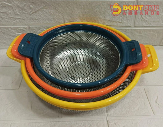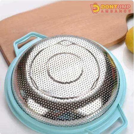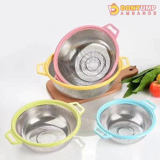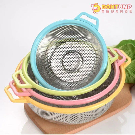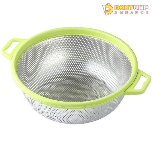 The draining basket can also be used to wash and sieve rice easily. It allows you to strain spaghetti, rice, vegetables & fruit and use it for washing or storing (e.g. fruit basket). It won't let food stuck after using due to its smooth surface. It is designed to accelerate draining. It comes with handles for easy use and of highest quality stainless steel. It has tiny holes of the colander prevent Fall-Through, while still providing quick drainage. They allow water to pass easily but at the same time keeping all food in the colander.