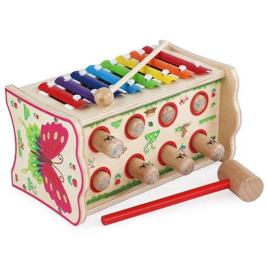 The Hamester Hammer Knocked Toy Music Knock Piano is an engaging musical toy designed to enhance hand-eye coordination and auditory skills. Its sturdy construction allows children to use the hammer to strike the piano keys, producing delightful sounds that encourage interactive play and early musical exploration. This toy fosters cognitive development and fine motor skills while providing an entertaining experience suited for young learners. Ideal for nurturing creativity, it offers a blend of fun and education in one compact design.