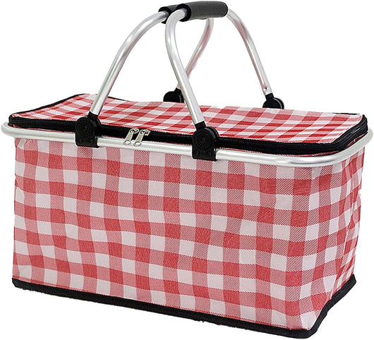 Experience convenience and style with this set of three insulated gingham/checkered folding picnic baskets. Crafted for durability and ease of use, each basket features a classic gingham pattern that adds a timeless charm to your outdoor outings. The insulated interior keeps your food and drinks fresh and cool, making these baskets perfect for picnics, beach days, or family gatherings. Lightweight and foldable, they save space when not in use and offer sturdy handles for easy carrying. This set combines practicality with an elegant design, ensuring your meals stay intact and your picnic looks effortlessly chic.