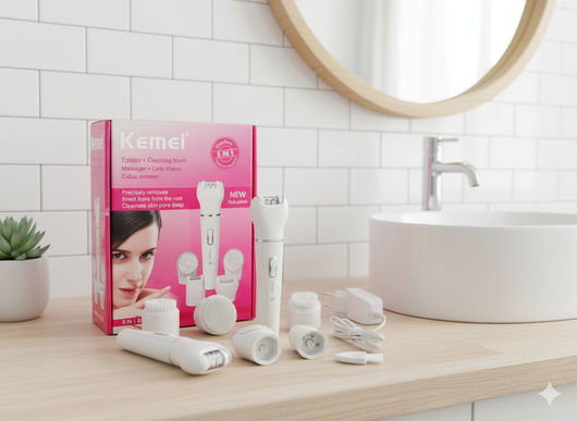 The Kemei 5-in-1 Women’s Electric Grooming Kit offers a comprehensive solution for personal care with interchangeable heads designed for epilation, shaving, and deep facial cleansing. Its versatile design ensures smooth skin by effectively removing unwanted hair, while the face cleaning brush gently exfoliates and refreshes your skin. Ergonomically crafted for precision and comfort, this grooming kit simplifies your beauty routine with professional results from the convenience of home use.