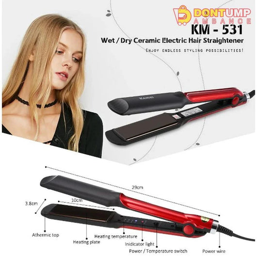 The Kemei Hair Straightener Km-531 is a reliable and professional hair straightening tool. With its advanced technology and precise temperature control, it effortlessly transforms frizzy or curly hair into sleek and smooth locks. Experience salon-like results in the comfort of your own home.