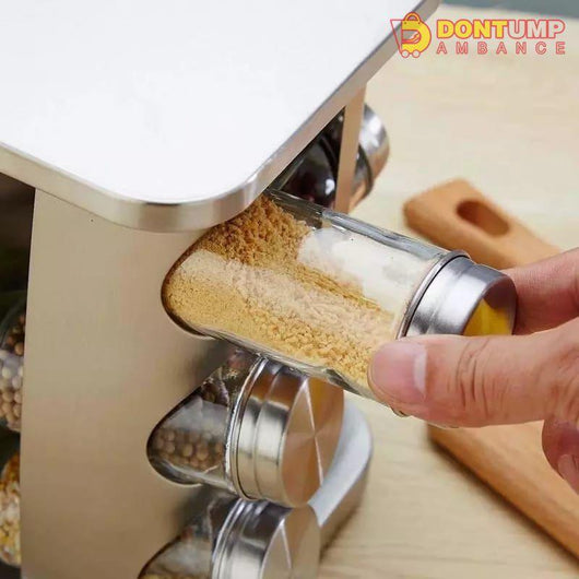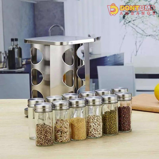 - 1:Spice Rack Organizer With 12 Pieces Glass Spice Jars.
