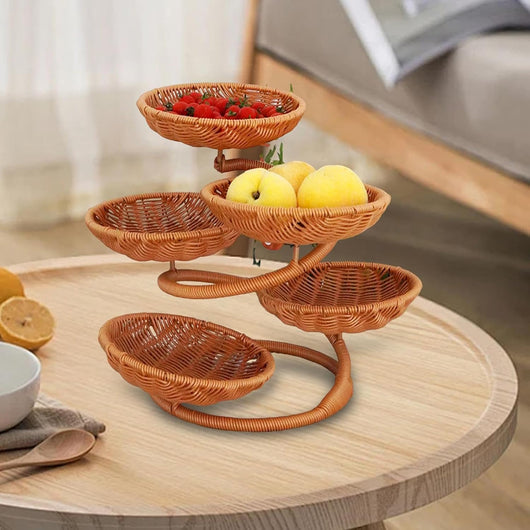 Elevate your kitchen organization with the LUXORMOVE Premium Rattan Fruit Rack, a sophisticated 5-tier storage solution crafted from natural rattan. This versatile organizer combines aesthetic appeal with practical functionality, perfect for displaying fresh produce, pantry items, or decorative pieces on your countertop. The sturdy tiered design maximizes vertical space while maintaining easy access to contents. Ideal for modern and traditional kitchens alike, this natural wood construction adds warmth and texture to any room. Keep your fruits, vegetables, and essentials neatly arranged and within reach.