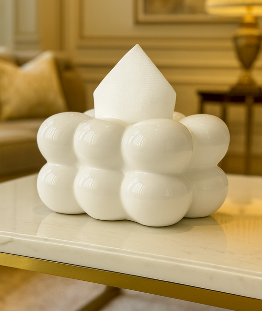 Elevate your tabletop with the Luxury Cloud Bubble Ceramic Tissue Holder, a refined blend of functionality and sophisticated design. Crafted from high-quality ceramic, its unique cloud bubble texture adds a subtle artistic touch while securely housing tissues for easy access. This elegant accessory enhances any room’s decor, combining practicality with a modern aesthetic that complements both contemporary and classic interiors. Ideal for those who appreciate thoughtful details and premium craftsmanship in everyday essentials.