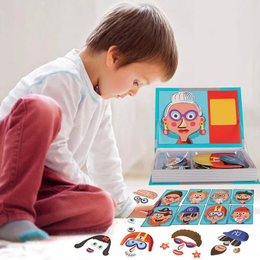 The Magnetic Book Funny Faces offers a creative way to engage and entertain while developing fine motor skills and imagination. Featuring magnetic pieces, it allows users to mix and match facial features easily, encouraging experimentation with expressions and emotions. Compact and portable, this interactive book is ideal for children to explore creativity in a hands-on manner, promoting both learning and fun in one versatile product.