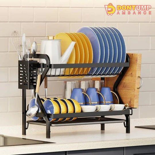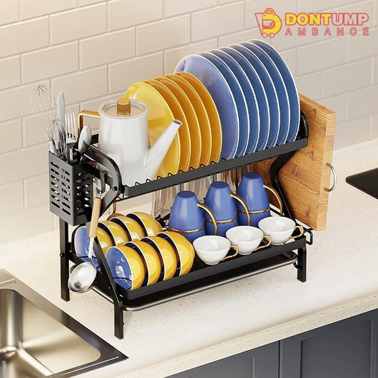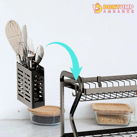 This dish drying rack comes with a dedicated utensil holder that provides a convenient spot to dry your cutlery, spatulas, and kitchen gadgets, keeping them within reach. It is made from high-quality stainless steel, this dish drying rack is sturdy, rust-resistant, and built to withstand daily use, ensuring durability and longevity. It included drain board effectively collects water runoff, keeping your countertop dry and preventing water stains. It can be easily removed for cleaning. It comes with a dedicated utensil holder that provides a convenient spot to dry your cutlery, spatulas, and kitchen gadgets, keeping them within reach. It saves tons of space and time which making your kitchen more clean and tidy.