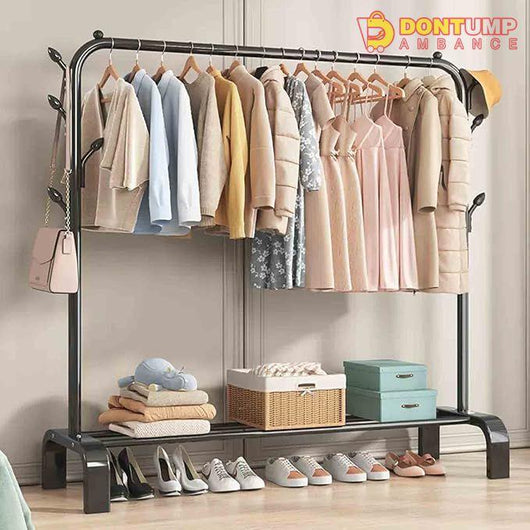 Introducing the Metal Multi Purpose Clothes Hanger Rack & Garments Rack, the perfect solution for organizing and maximizing your closet space. With a load bearing of 50kg, this durable and versatile rack is capable of holding heavy garments with ease. Say goodbye to cluttered closets and hello to efficient organization.