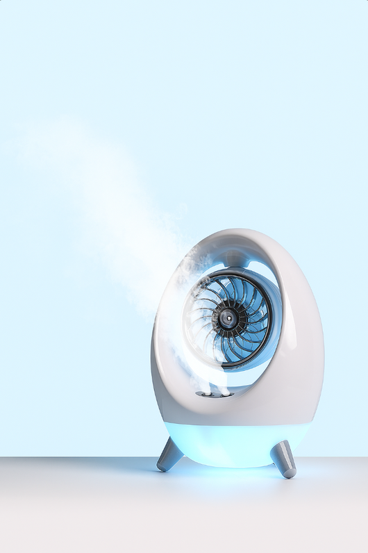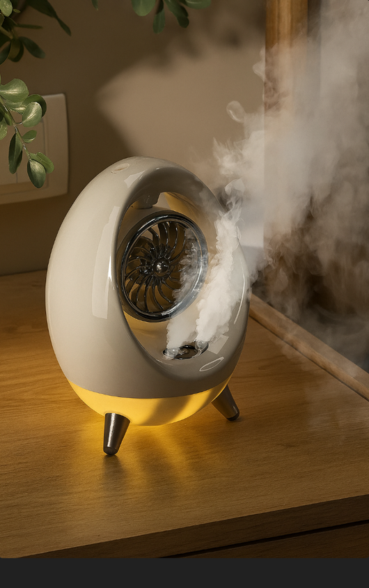 The Mini Humidifier & Cooling Fan features a compact egg-shaped design that combines functionality with style. Equipped with an LED light mist diffuser, it enhances air quality by adding moisture while providing a gentle cooling breeze. Ideal for personal spaces, this device promotes comfort and helps maintain optimal humidity levels, making it perfect for use at home or in the office. Its quiet operation and sleek design ensure it fits seamlessly into any environment.