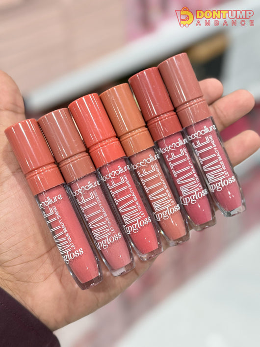 The Mocallure Nude Matt Lipgloss 6 pcs set features a curated collection of versatile nude shades with a smooth matte finish. Each lipgloss delivers rich pigmentation and long-lasting wear, enhancing your natural lip color with a sophisticated, non-glossy look. This set is ideal for creating elegant, everyday makeup styles or subtle, professional looks, providing a reliable and comfortable formula that resists smudging and fading throughout the day. Perfect for makeup professionals seeking quality and consistency in nude lip products.
