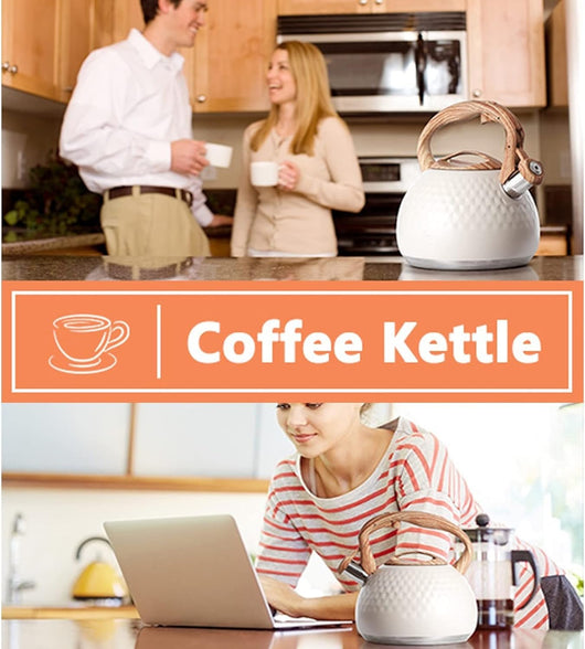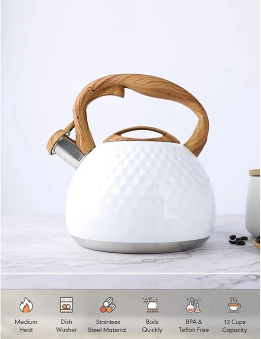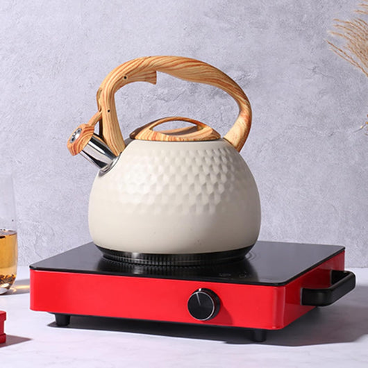 The Modern Textured Stovetop Tea Kettle combines sleek design with practical functionality. Crafted for stovetop use, its textured surface enhances grip and aesthetic appeal while promoting even heat distribution for efficient boiling. This kettle is an ideal choice for those seeking reliable performance and a contemporary look in their kitchen essentials.