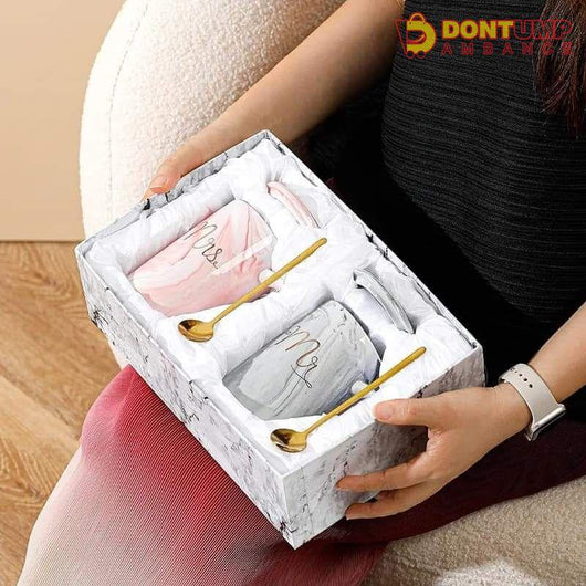 This elegant MR & MRS mug set comes in a beautiful gift box, making it the perfect present for any newlyweds or couples. The high-quality mugs are both stylish and practical, with a modern font design and a comfortable grip for everyday use. Share a cup of happiness with your significant other.