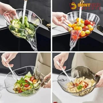 Maximize efficiency in the kitchen with our multifunctional drain funnel bowl. This household gadget not only serves as a food washing basket but also allows for dry and wet separation. The transparent design makes it easy to wash and drain fruits, while the funnel offers a mess-free experience. A must-have kitchen tool for easy cleaning and organization.