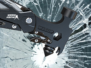 Multitool can crack glass and hard objects, cut seat belts and ropes. Essential for emergency lifesaving.