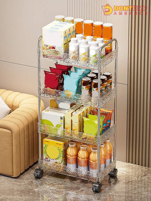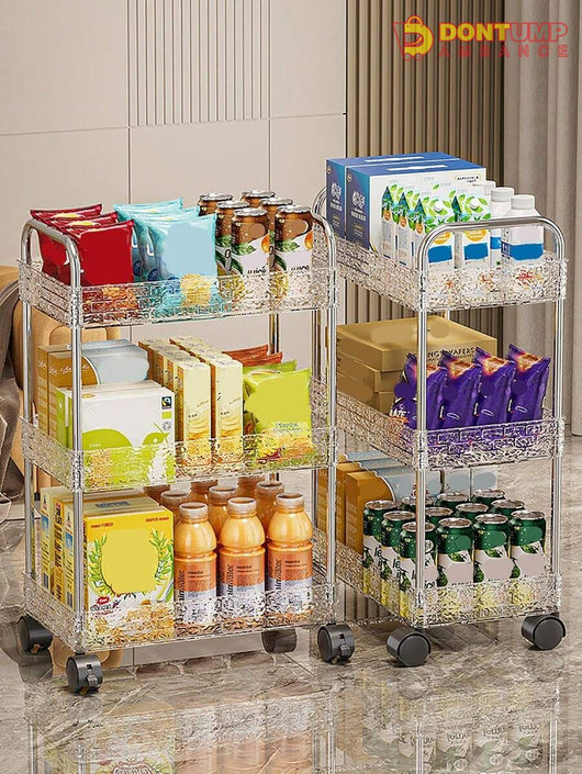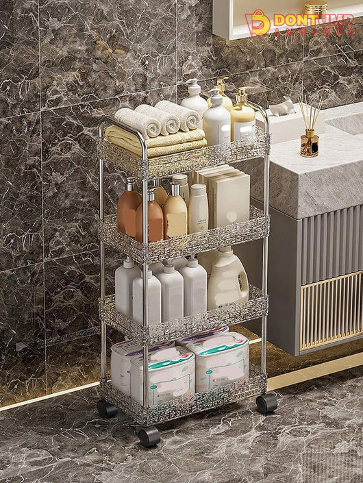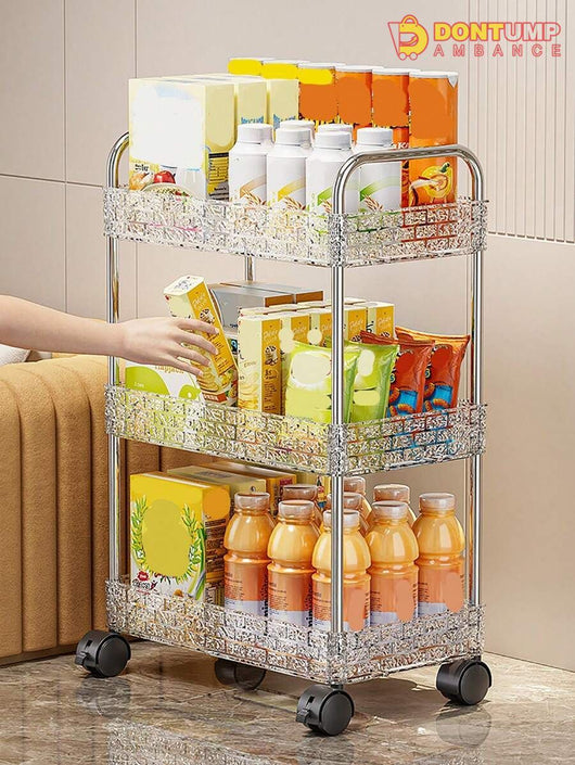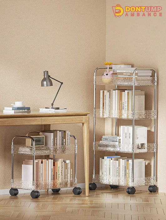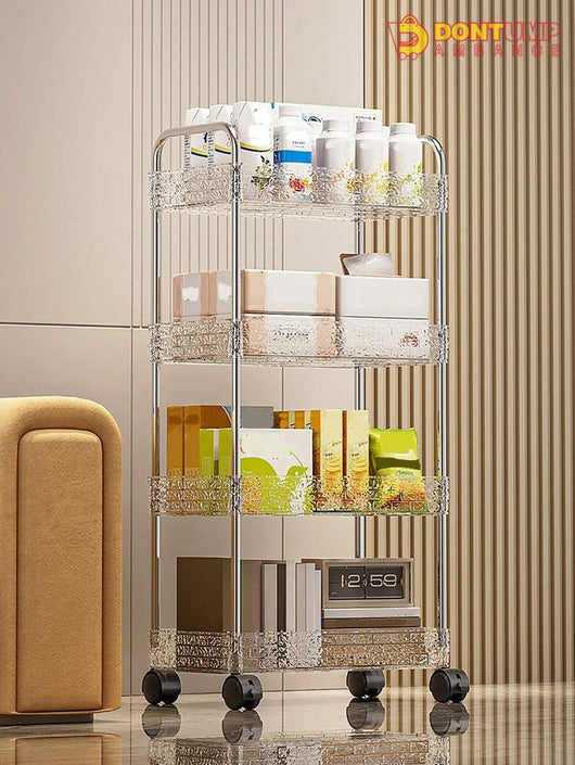 This storage cart is designed with multiple layers and made from durable acrylic material. Its compact design allows for easy organization and its wheels provide convenient mobility. Perfect for keeping your space clutter-free and your belongings within reach.