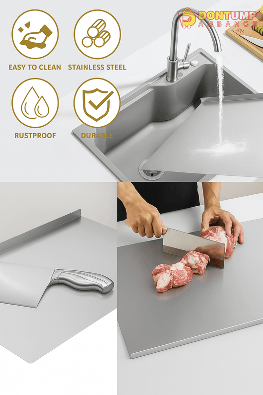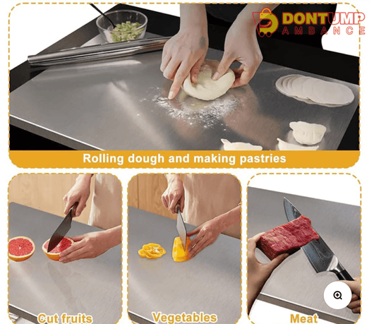 This multipurpose stainless steel cutting board is designed for versatile kitchen use, perfect for preparing dough, fruits, vegetables, and meat. Its durable, non-porous surface resists stains and odors, ensuring hygienic food prep. The sturdy construction provides a stable cutting area, while the sleek stainless steel design offers easy cleaning and long-lasting performance, making it an essential tool for both professional chefs and home cooks.