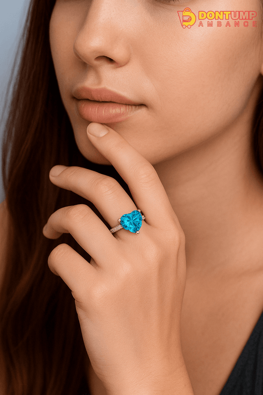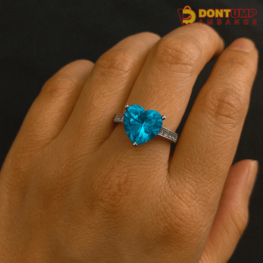 A ring for those with a big heart! Set your heart high with this authentic Blue Topaz ring with delicately set white topaz for even more bling. This sparkly beauty will have you and everyone else in a daze. At 3ct plus, it is not for the faint-hearted
