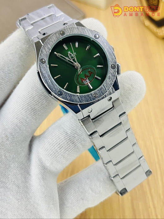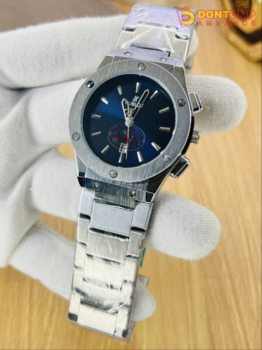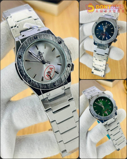 Elevate your wrist game with our premium Hublot timepiece featuring a durable steel chain bracelet. This sophisticated watch includes a functional date display and secure butterfly lock clasp for comfortable all-day wear. Precision engineering meets elegant design in this latest addition to our collection.
