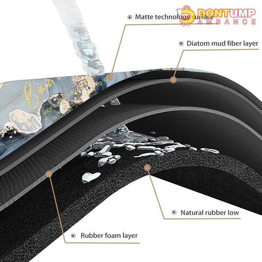- Our floor mat consists of three layers by different material, the first layer made of resin, soft and not easily scratched and easy clean. The second layer made of diatom mud, strong water absorption. The third layer made of rubber, strong slip resistance.