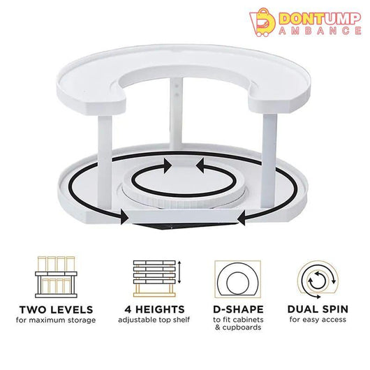 - DUAL SPIN LAZY SUSAN – Built-in turntables keep all your spices at your fingertips with a simple spin. Makes everything visible and provides storage for taller items. Reclaim unused space in your cabinets and keep everything in view!