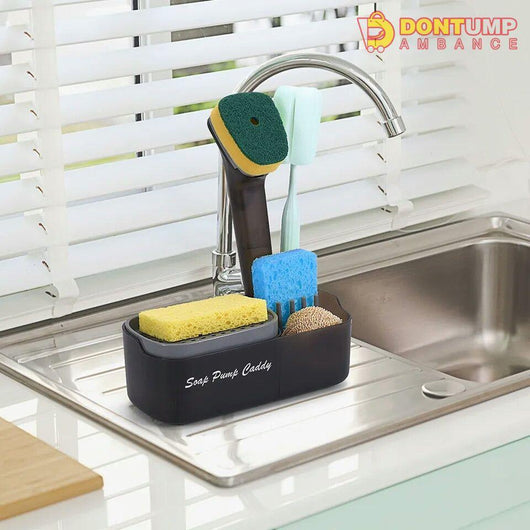 - 【2 In 1 Dish Soap Dispenser】This innovative dish soap dispenser also doubles as a sponge holder and drainer. With a large tissue capacity, the sink dispenser keeps your kitchen countertops neat and dry by putting sponges, detergent, wipes and liquids in one box.
