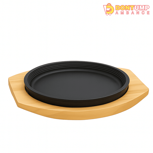 This Non-Stick Cast Iron Sizzler Plate with Wooden Base is designed for professional-quality serving of hot meals. The cast iron construction ensures excellent heat retention and even cooking, while the non-stick surface allows for easy food release and effortless cleaning. The sturdy wooden base provides safe handling and protects your table from heat damage. Ideal for sizzling steaks, fajitas, or grilled vegetables, this plate combines durability with functionality to enhance your dining experience.