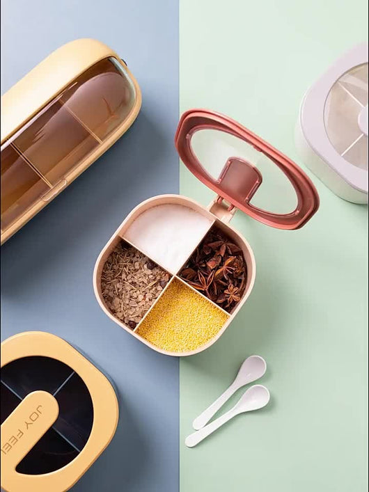 Elevate your kitchen organization with the Nordic Contrast Color 4-Compartment Spice Jars Set. Designed for clarity and convenience, this set features four distinct compartments that allow effortless sorting and access to your essential spices. The contrasting color scheme enhances visual identification, streamlining cooking preparation. Crafted with precision, these jars maintain freshness while offering a stylish, minimalist aesthetic suited for modern kitchens. Optimize your spice storage with this functional and elegant solution.