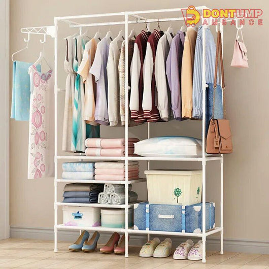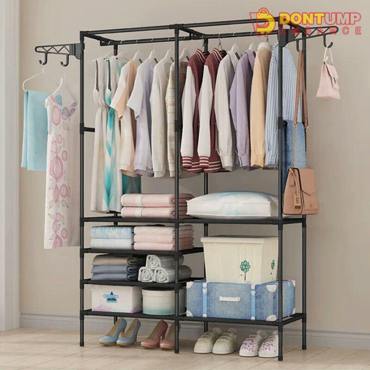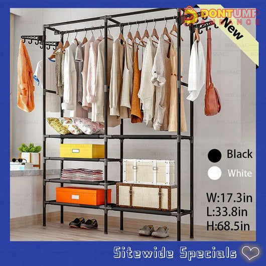 - 【PLENTY STORAGE SPACE】: Extra large clothes closet rack with Two clothes rails can accommodate double the amount of clothing. The underlying is equipped with six layers of shelving for clothes and shoes. The design with hooks on both sides is more convenient and practical. Adding more space for your needs.