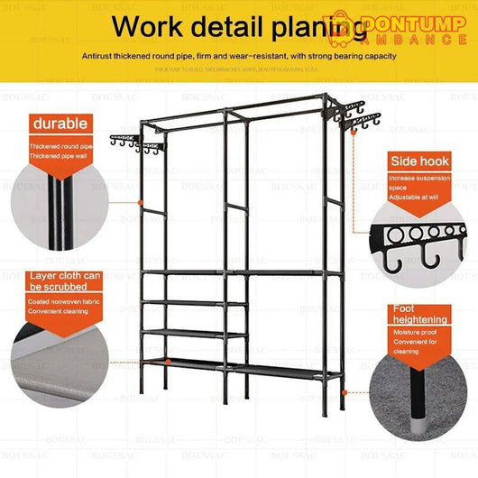 - 【PORTABLE WARDROBE RACK】: Simple and chic design adds instant storage to any room. Easily transport your freestanding wardrobe. The strong steel frame is precisely the elegant mix of styles, remarkable durability. This portable closet can be easily located anywhere in your house.