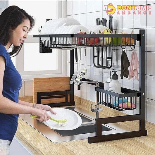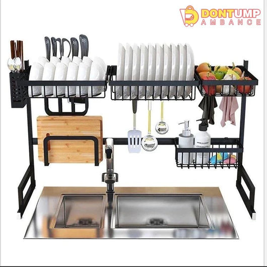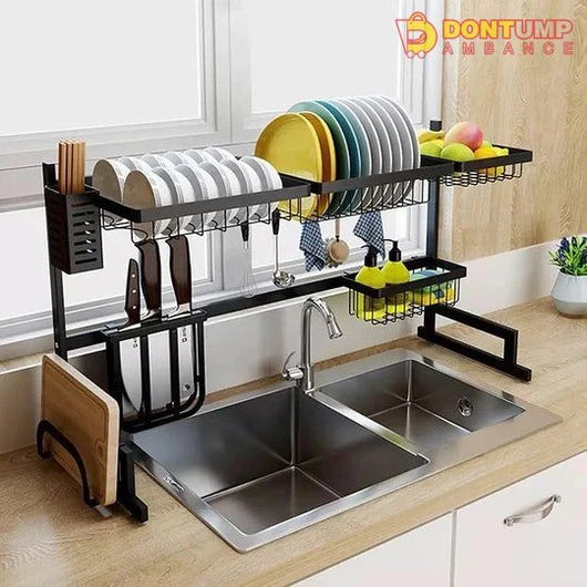 Maximize your kitchen space with our OVER THE SINK DISHES RACK. With its adjustable design, it fits perfectly over most sinks, giving you extra counter space. The sturdy stainless steel construction can hold multiple dishes, utensils, and even cutting boards. Keep your kitchen organized and efficient with this essential tool.