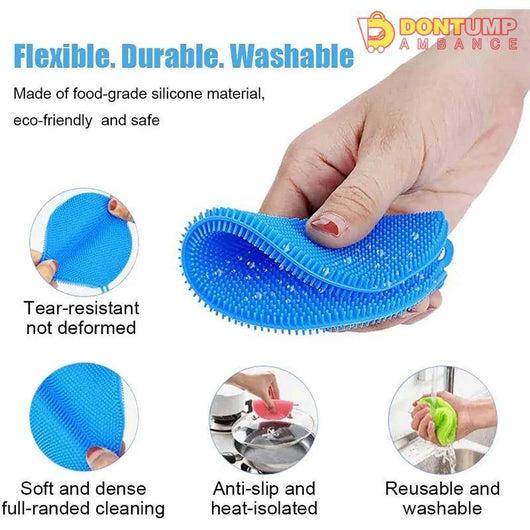 Enhance your cleaning routine with this pack of 4 silicone sponges. These sponges are made of high-quality, durable silicone material that is gentle on surfaces but tough on stubborn stains. The non-porous design prevents bacteria build-up, making them hygienic and long-lasting. Say goodbye to traditional sponges and hello to a more efficient and effective cleaning experience!