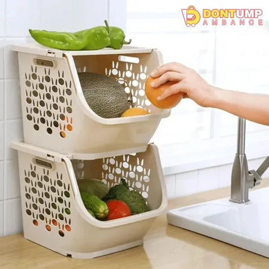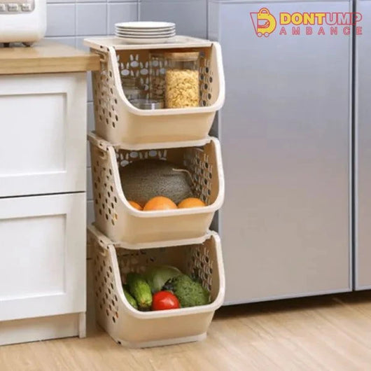 Maximize storage space and keep your kitchen organized with this plastic three-tier kitchen rack. With a built-in storage box, this rack provides a convenient solution for storing kitchen essentials. Made from durable plastic, it is easy to clean and can hold up to daily use.