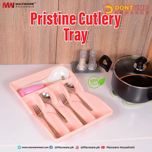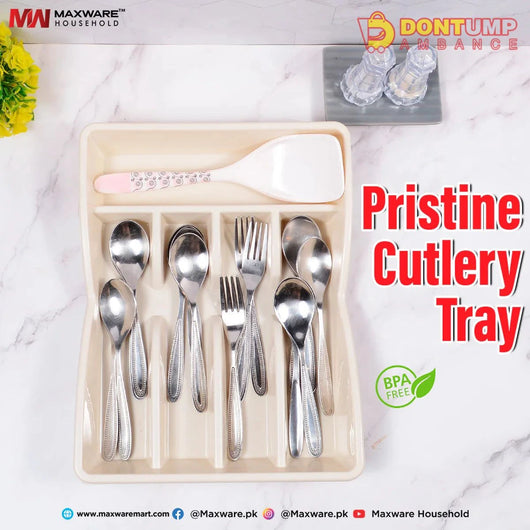 Introducing the Pristine Cutlery Tray - the perfect solution for organizing your kitchen utensils. Made with high-quality materials and a sleek design, it maximizes space while providing easy access to your cutlery. Increase efficiency and declutter your kitchen with our expertly crafted tray.