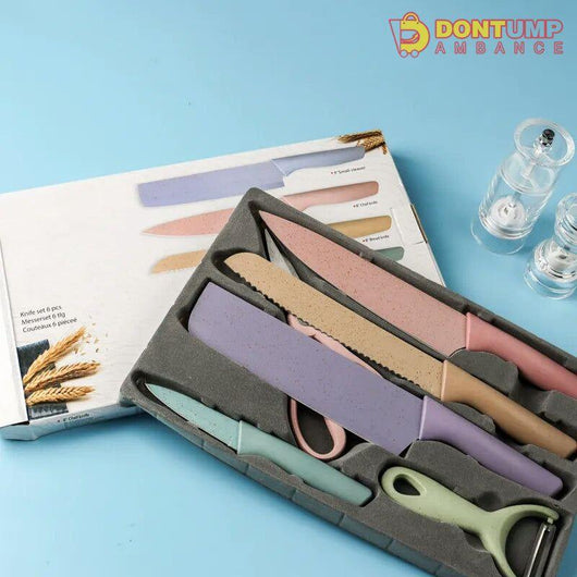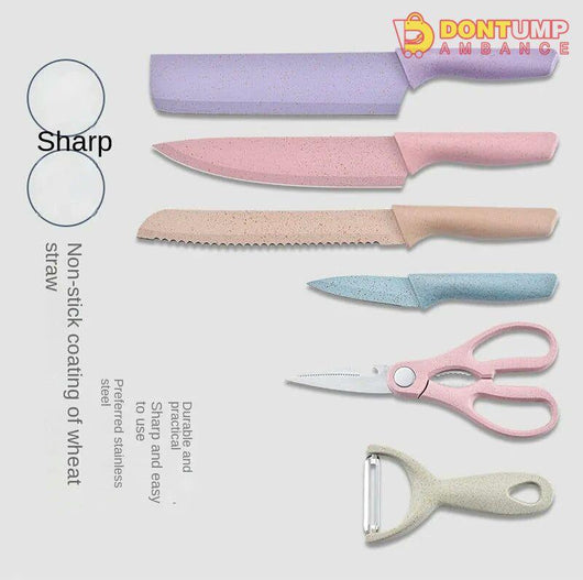 - 【Colorful Kitchen Knife Set】 This colorful kitchen knife set includes an 8" chef knife, 8" small knife, 8" bread knife, 3.5" paring knife, scissors and peeler. The scissors can also be used as a bottle opener or nutcracker. This multi-functional knife set will meet all your cooking needs. Suitable gift for Valentine's Day, Mother's Day, Easter, Halloween, Birthday, Business etc