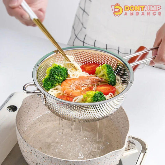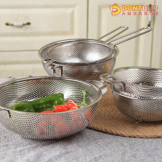 Efficiently strain rice with ease using our Stainless Steel Rice Strainer with Handle. Made from durable stainless steel, this strainer is designed for long-lasting use. The ergonomic handle provides a comfortable grip and makes straining a breeze. Upgrade your cooking experience with this essential kitchen tool.