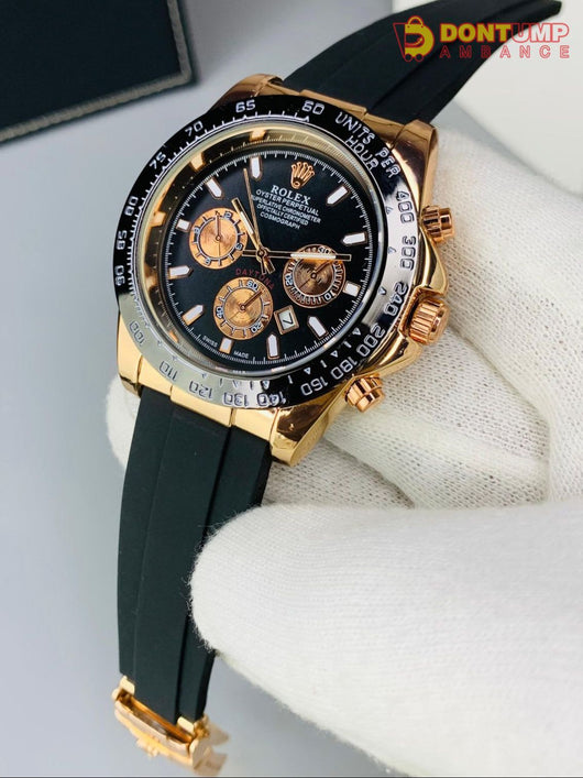 The ROLEX DAYTONA offers a big case, functional date feature, and durable stainless steel with a secure locking mechanism. Its impeccable finish ensures a polished look. Trust in this high-quality timepiece, perfect for any occasion.
