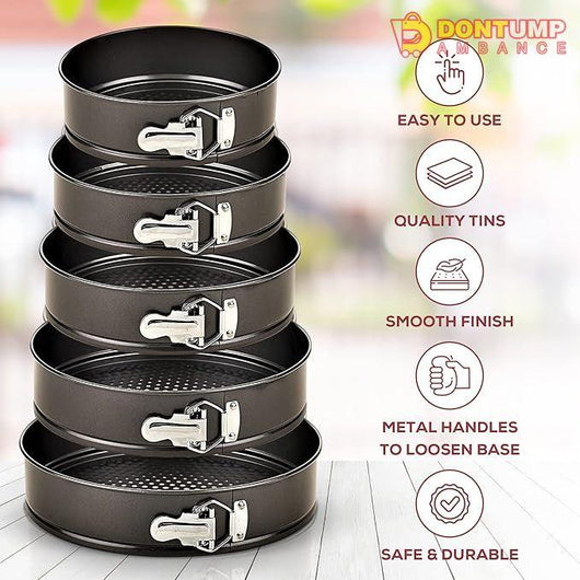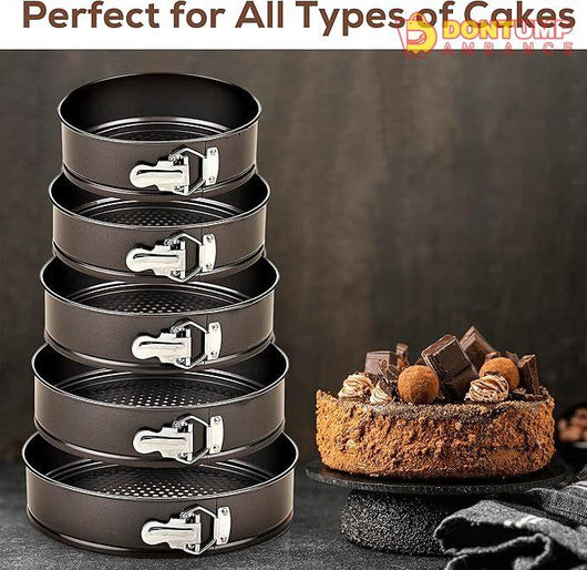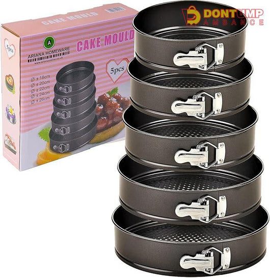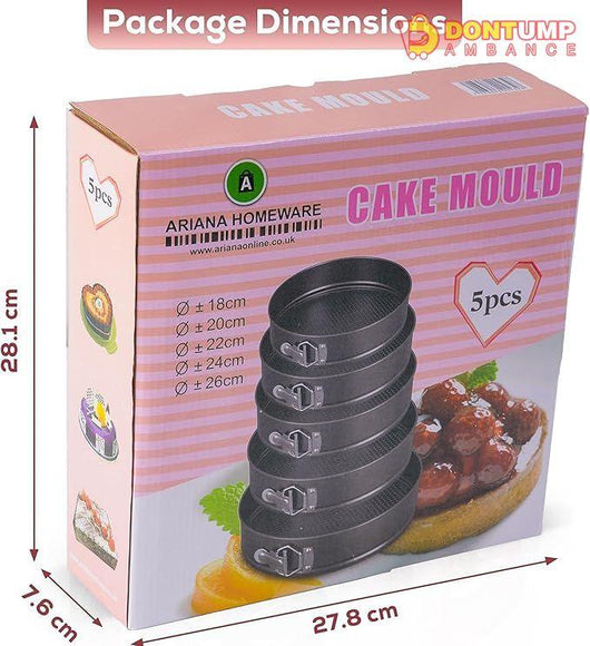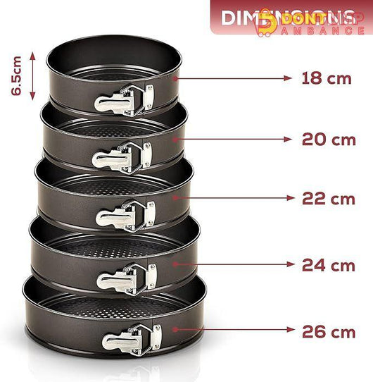 Enhance your baking game with our Set of 5 Round Cake Molds! Crafted with removable pants and sturdy metal, these molds make for easy removal and consistent shapes. Enjoy perfect, professional-looking cakes every time.