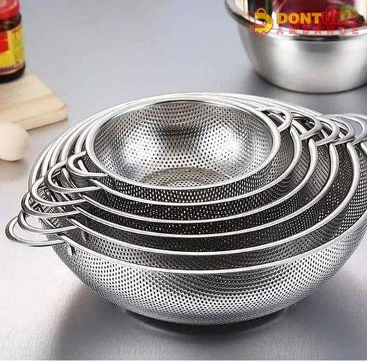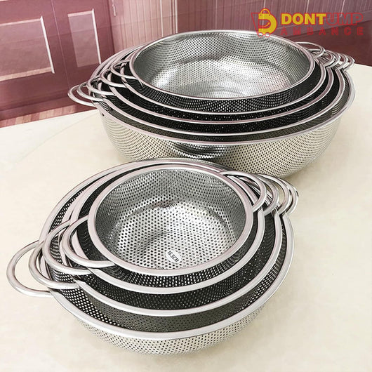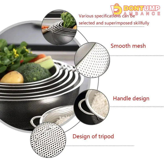 Set Of 6 Stainless Steel Punching Basket, Kitchen Steel Mesh Strainer Colander Set