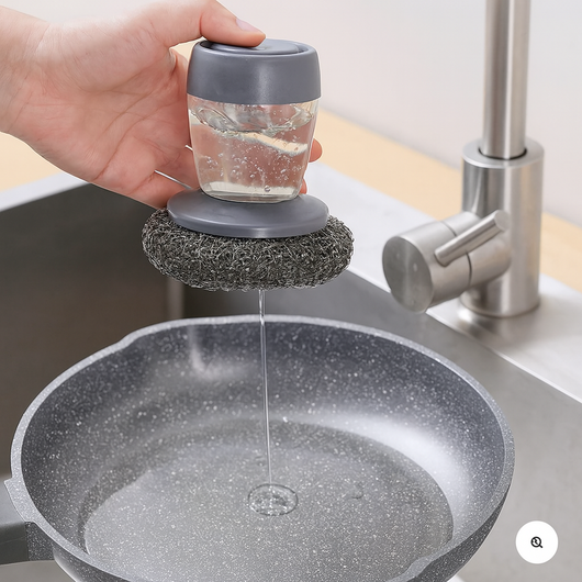 The Soap Dispensing Steel Scrubber combines durable steel bristles with an integrated soap reservoir, enabling efficient and thorough cleaning with minimal effort. Its design ensures consistent soap release during scrubbing, enhancing grease and grime removal while reducing the need for additional cleaning products. Ideal for tackling tough kitchen messes, this tool offers a professional-grade solution for maintaining spotless cookware and surfaces.